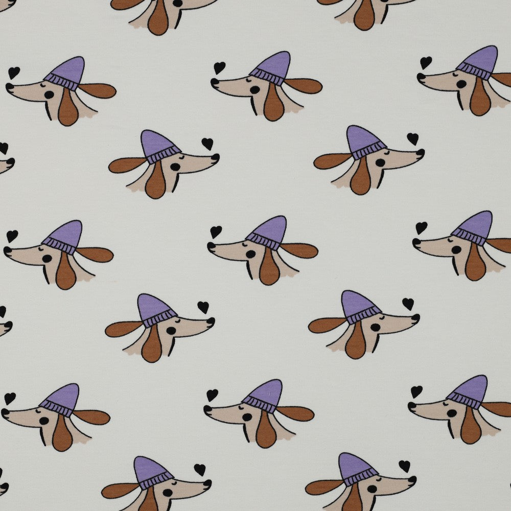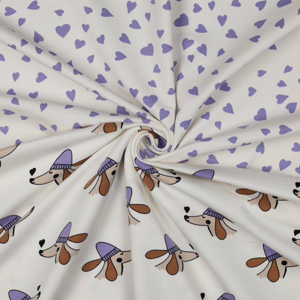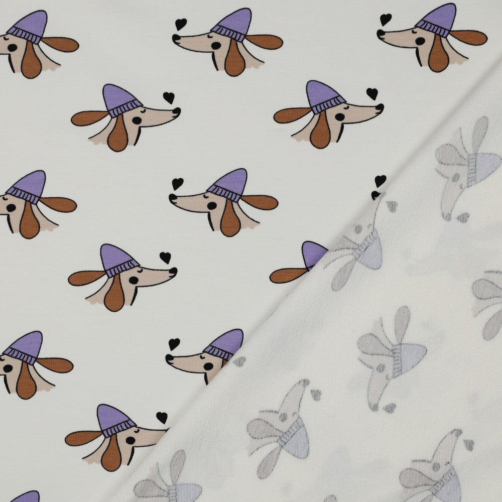 French terry DOGS and HEARTS POPPY