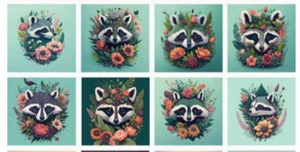 Panneau 8 motifs 13x13 cm Ratons laveurs